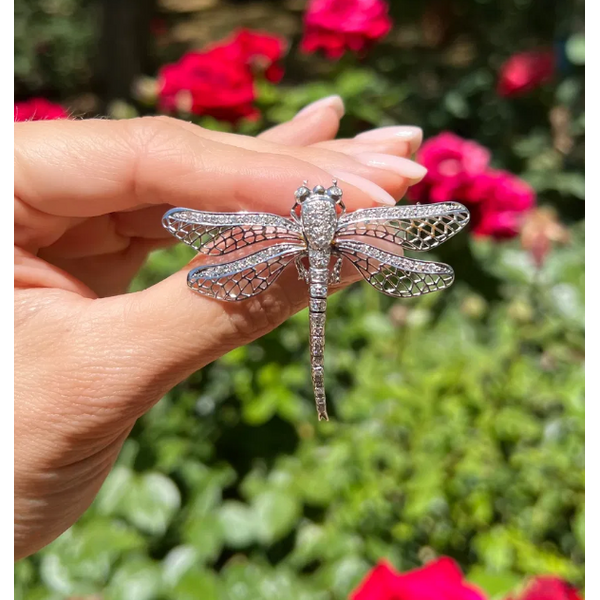 Diamond Filigree Dragonfly Brooch Image 2 Mystique Jewelers Alexandria, VA