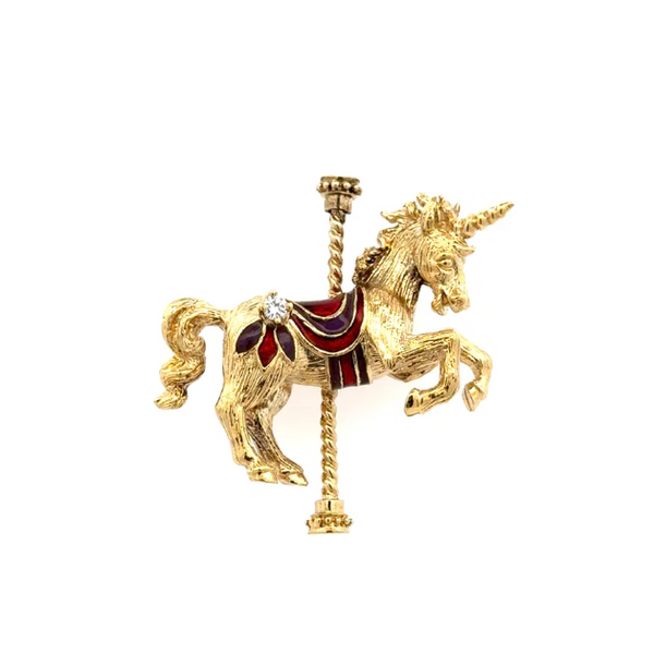 Diamond Unicorn Carousel Brooch Mystique Jewelers Alexandria, VA