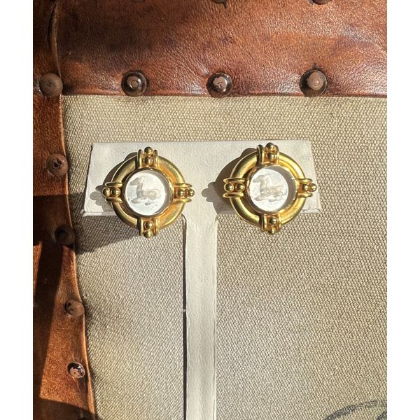Elizabeth Locke 21K gold horse intaglio earrings  Mystique Jewelers Alexandria, VA