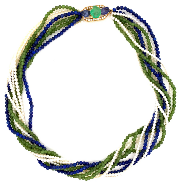 Lapis, Pearl & Nephrite Bead Necklace Image 2 Mystique Jewelers Alexandria, VA