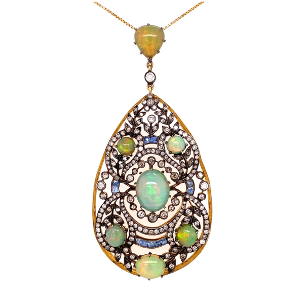 Opal, Diamond, and Sapphire Necklace