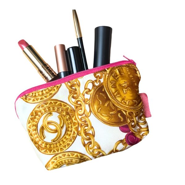 4. CC Logo Gold Coins Vintage Silk Scarf Beauty Bag