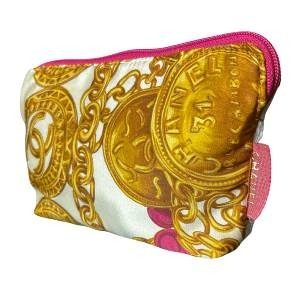 CC Logo Gold Coins Vintage Silk Scarf Beauty Bag