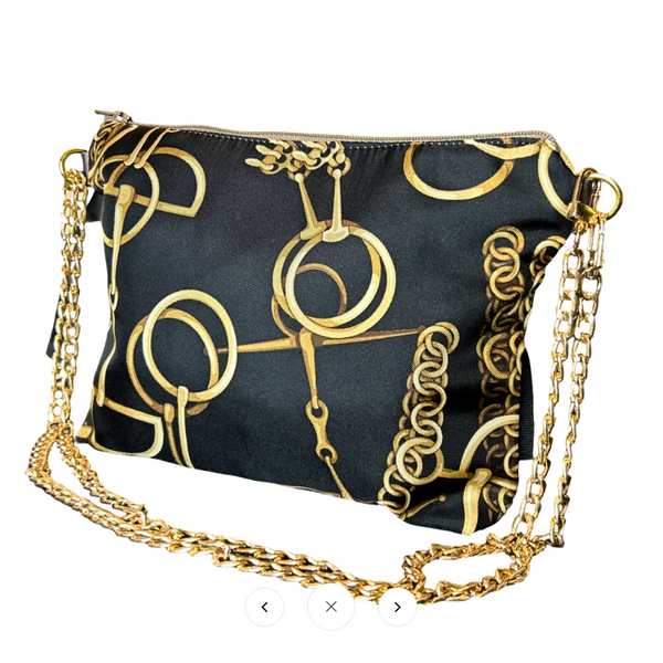 Horse Bit Noir Vintage Silk Scarf Crossbody Bag